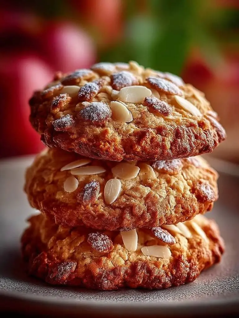 Imaginez des biscuits croustillants à l’extérieur et moelleux à l’intérieur, parfumés à la pomme et à l’avoine. Chaque bouchée vous transporte vers un verger en plein été.