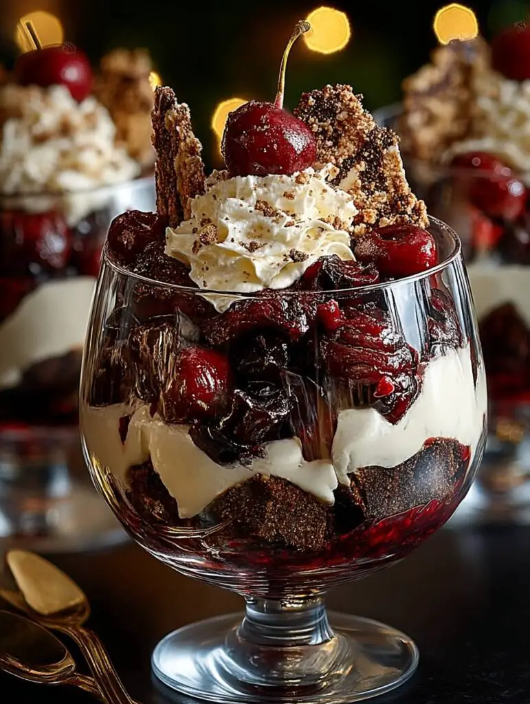 Le Black Forest Trifle for Christmas est un véritable régal visuel et gustatif qui combine des couches de saveurs délicieuses. Avec sa texture crémeuse, ses fruits juteux et son croquant irrésistible, ce dessert est parfait pour impressionner vos convives lors des fêtes. En plus d’être facile à préparer, il ravira tous les palais avec son mélange parfait de douceur et d’acidité. N’attendez plus pour créer ce chef-d’œuvre culinaire chez vous ! Lancez-vous dans la préparation de cette recette mémorable et partagez vos résultats avec vos proches.