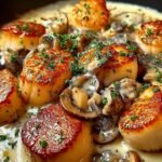 Dans la même poêle, ajoutez les noix de Saint-Jacques après avoir retiré les champignons. Faites cuire chaque côté pendant environ 2 minutes jusqu’à ce qu’elles soient dorées mais encore moelleuses à l’intérieur.