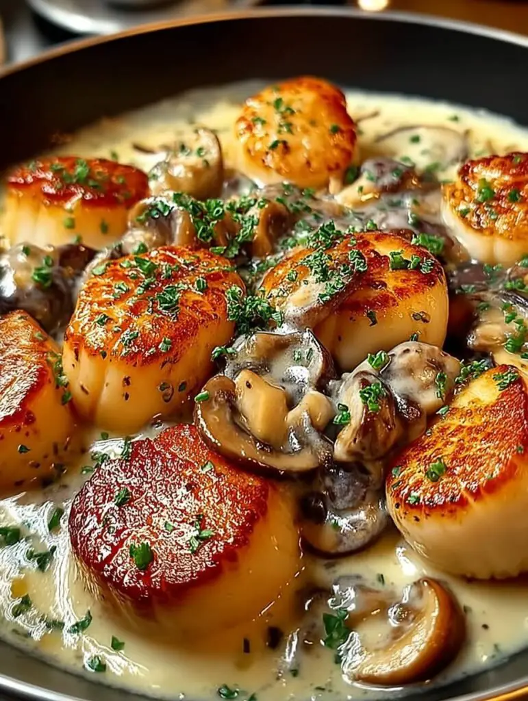 Dans la même poêle, ajoutez les noix de Saint-Jacques après avoir retiré les champignons. Faites cuire chaque côté pendant environ 2 minutes jusqu’à ce qu’elles soient dorées mais encore moelleuses à l’intérieur.