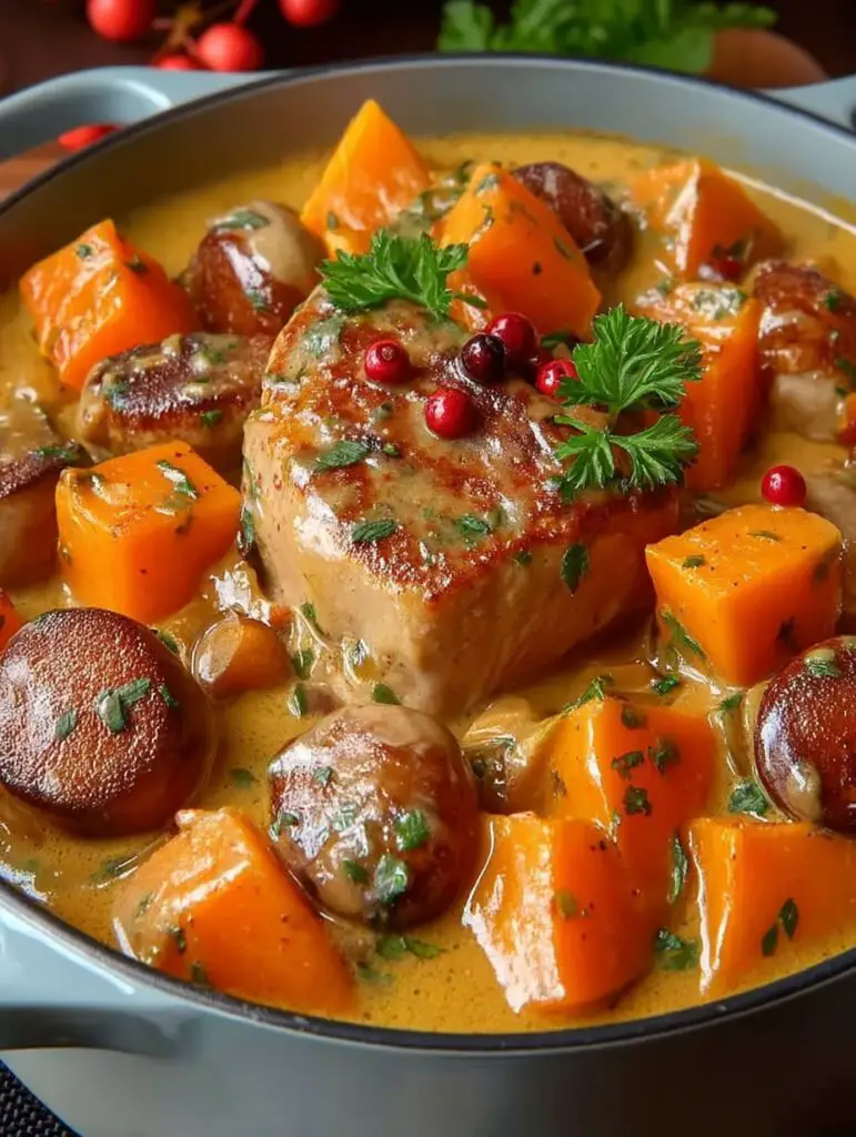 Délicieuse recette de blanquette dinde marrons potiron avec des instructions détaillées et des informations nutritionnelles.