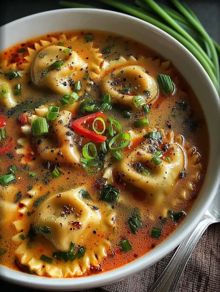 Ce bouillon thaïlandais au coco avec raviolis est bien plus qu’un simple plat. D’abord, il est d’une facilité déconcertante à préparer, même pour les novices. Ensuite, son profil de saveur unique combine la douceur du lait de coco avec des notes épicées et herbacées. Visuellement, il est époustouflant avec ses couleurs vibrantes et son aspect crémeux qui attire le regard et éveille les papilles. Enfin, sa polyvalence permet d’adapter les ingrédients selon vos préférences ou ce que vous avez sous la main.