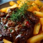 La CARBONADE FLAMANDE AUX FRITES est un plat parfait pour partager lors d’un repas convivial entre amis ou en famille. Servez-le avec un bon pain frais pour saucer chaque dernière goutte ! Bon appétit !