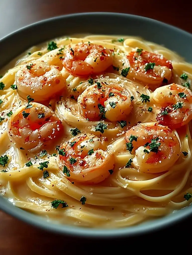 Délicieuse recette de crevettes à l’ail et spaghetti avec des instructions détaillées et des informations nutritionnelles.