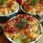 Cette recette de Crevettes Poireaux Cassolettes est un vrai bijou culinaire pour plusieurs raisons. Tout d’abord, sa préparation est d’une simplicité déconcertante, ce qui en fait un choix idéal même lors des soirées chargées. De plus, le mélange unique de saveurs entre les crevettes et les poireaux crée un équilibre parfait entre douceur et salinité. Visuellement, ce plat est époustouflant : la couleur dorée du gratin contraste avec le vert tendre des poireaux. Enfin, vous pouvez facilement personnaliser cette recette en y ajoutant vos ingrédients préférés ou en ajustant les épices selon vos goûts.