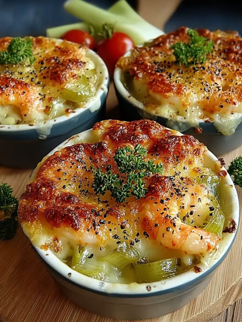 Les Crevettes Poireaux Cassolettes sont un véritable délice pour les papilles. Imaginez des crevettes juteuses, accompagnées de poireaux fondants dans une sauce crémeuse, le tout gratiné à la perfection. Un plat qui éveille les sens !