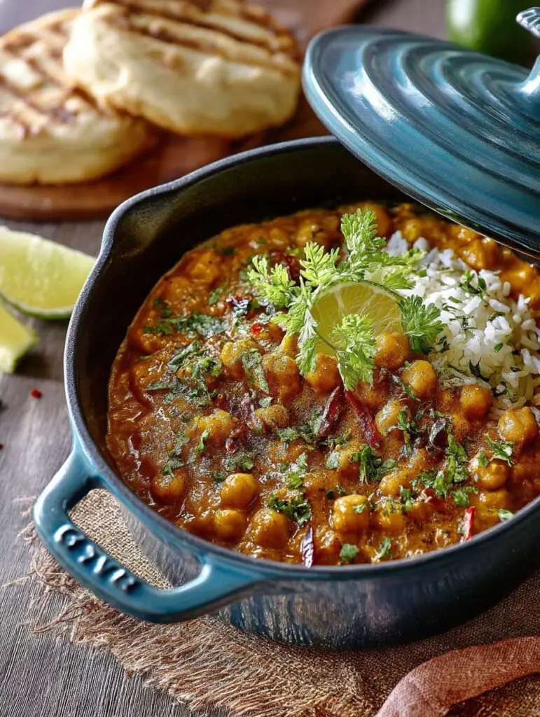 Délicieuse recette de curry de pois chiches avec des instructions détaillées et des informations nutritionnelles.