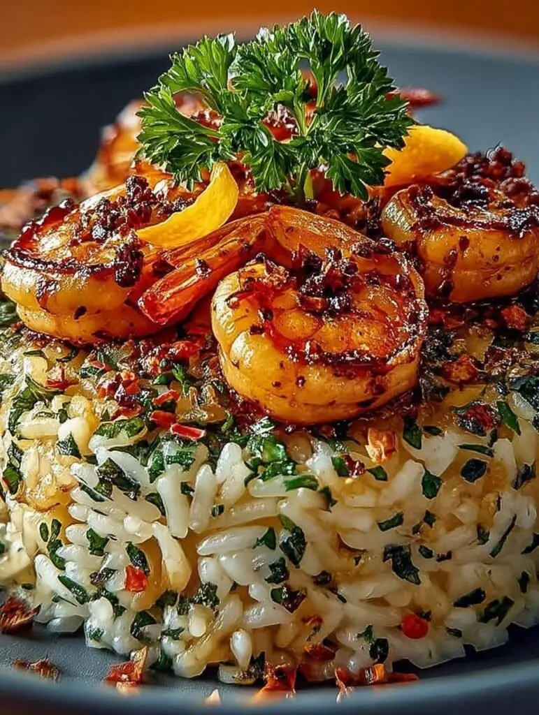 - Servez le Garnelen Knoblauchbutter Reis chaud, garni d'un peu de persil frais haché.