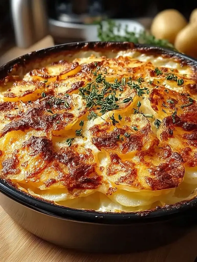 Délicieuse recette de gratin dauphinois de grand-mère avec des instructions détaillées et des informations nutritionnelles.