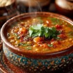 - Servez votre Harira chaude dans des bols individuels garnis de coriandre fraîche hachée sur le dessus.