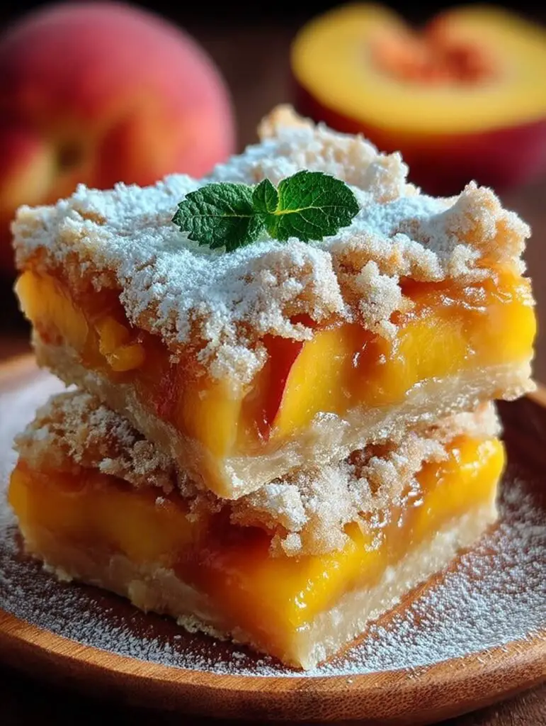 Les Heavenly Summer Peach Bars ne manqueront pas d’enchanter vos invités par leur goût irrésistible et leur aspect alléchant ! Que vous soyez en famille ou entre amis, ces barres seront toujours un succès garanti lors des chaudes journées d’été. Bon appétit !