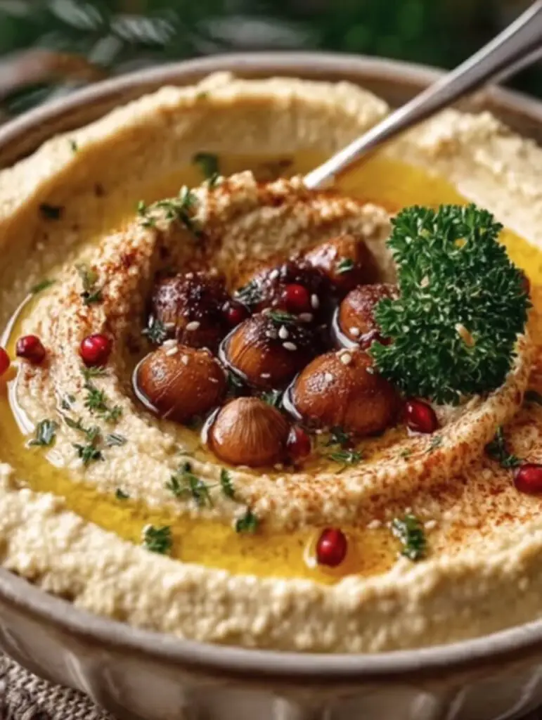 Délicieuse recette de houmous de châtaigne pour noël avec des instructions détaillées et des informations nutritionnelles.