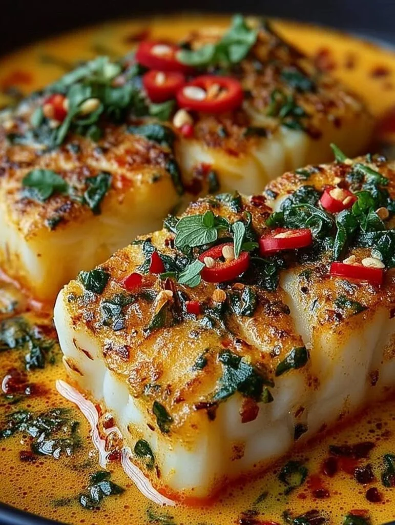 Délicieuse recette de kabeljau mit kokos-curry aus dem ofen avec des instructions détaillées et des informations nutritionnelles.