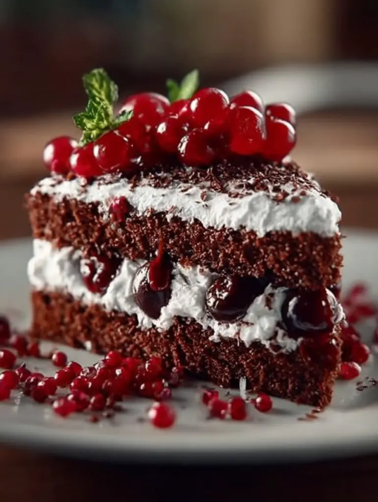 Délicieuse recette de la vraie forêt noire : un dessert élégant et festif avec des instructions détaillées et des informations nutritionnelles.