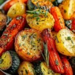Les Légumes Rôtis à l’Ail et aux Herbes sont un véritable festival de couleurs, de saveurs et de textures. Imaginez des légumes tendres, légèrement caramélisés à l’extérieur, avec une explosion d’arômes d’ail et d’herbes fraîches qui dansent sur votre palais.