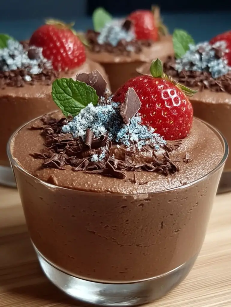 - Versez la mousse dans des verrines ou ramequins individuels. Laissez reposer au réfrigérateur pendant au moins 2 heures avant de servir. Pour une touche finale élégante, garnissez votre mousse avec quelques copeaux de chocolat ou des fruits rouges frais avant dégustation.