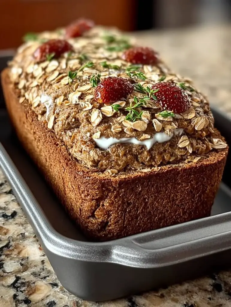 Délicieuse recette de pain express aux flocons d’avoine et yaourt grec avec des instructions détaillées et des informations nutritionnelles.