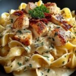 Les Pâtes au Poulet et Sauce Crémeuse au Boursin offrent une expérience culinaire riche et réconfortante. La douceur du Boursin se marie parfaitement avec le poulet tendre, tandis que les pâtes absorbent délicieusement la sauce crémeuse. Ce plat est non seulement rapide à préparer, mais il ravira aussi vos convives par ses saveurs intenses et sa texture onctueuse. N’attendez plus pour savourer ce délice ! Mettez votre tablier et essayez cette recette dès aujourd’hui, vous ne serez pas déçu !