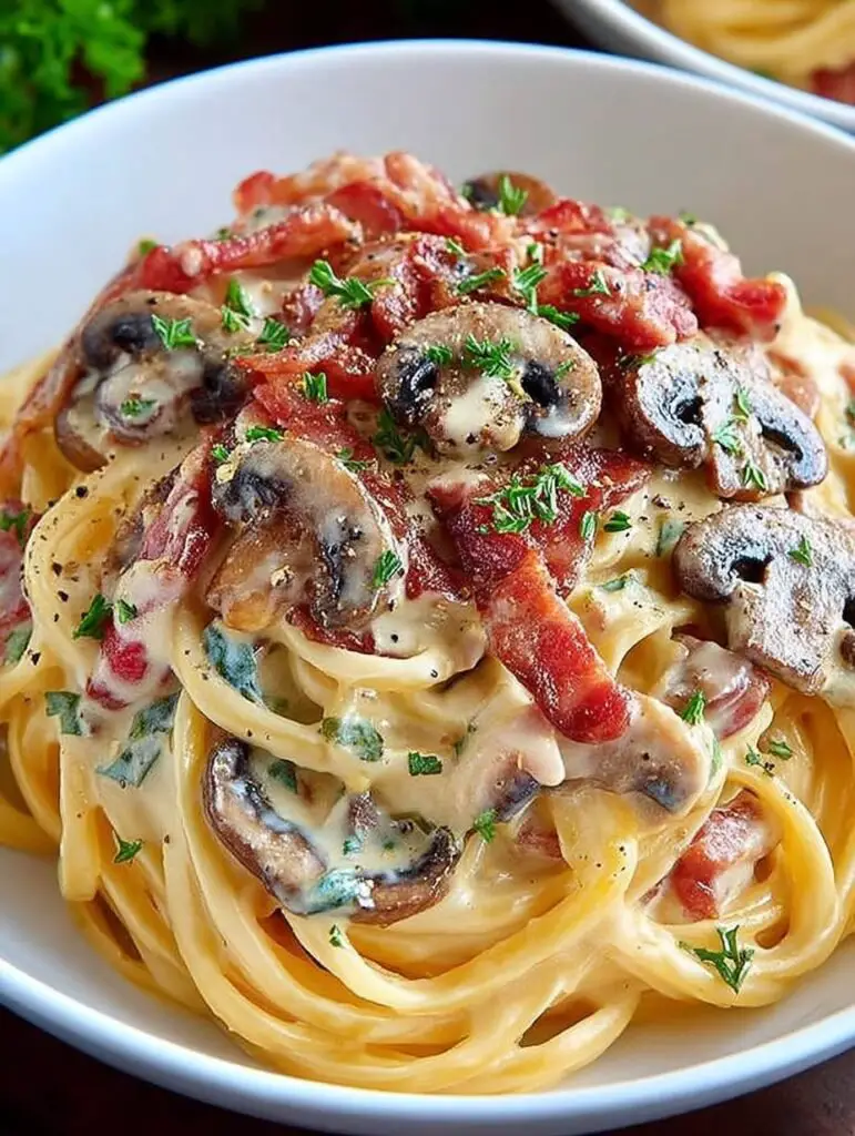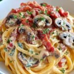 Cette recette de Pâtes Boscaiola – Délice Italien au Bacon et Champignons – Belappetit me rappelle mes vacances à Rome. J’ai découvert ce plat dans une trattoria locale, où le chef préparait tout avec passion, créant une atmosphère chaleureuse qui m’a immédiatement séduite.