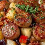 Les arômes envoûtants d’une poêlée de saucisses aux pommes s’élèvent dans l’air, promettant un mélange parfait de saveurs sucrées et salées. Chaque bouchée révèle un équilibre exquis entre le croustillant des pommes dorées et la tendreté des saucisses savoureuses.