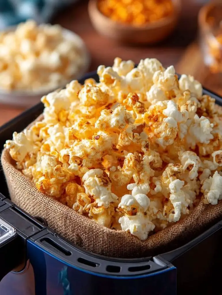 Délicieuse recette de popcorn au air fryer avec des instructions détaillées et des informations nutritionnelles.
