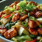 Ce Poulet Chinois Sauté au Chou est non seulement facile à réaliser mais également parfait pour impressionner vos convives lors d’un dîner ou tout simplement pour se faire plaisir après une longue journée ! N’hésitez pas à adapter cette recette selon vos préférences en ajoutant des légumes supplémentaires ou en jouant sur les épices.