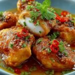 Pour conserver les restes, placez-les dans un récipient hermétique et réfrigérez. Vous pouvez les garder jusqu’à 3 jours au réfrigérateur. Pour réchauffer, utilisez une casserole à feu doux ou un micro-ondes jusqu’à ce que le plat soit bien chaud. Évitez de surcuire lors du réchauffage pour préserver la texture du poulet.