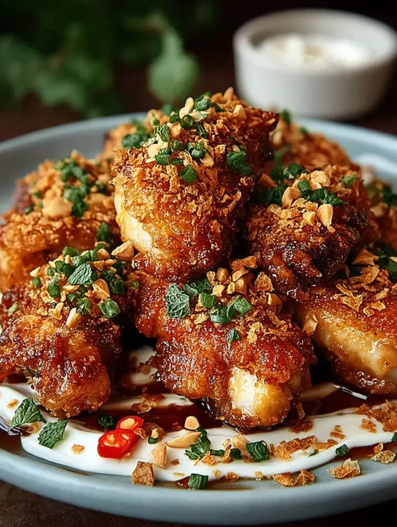 Pour présenter votre Poulet Croustillant Thaï – Dîner Facile et Sans Gluten, disposez-le sur un plat coloré avec quelques feuilles de coriandre fraîches sur le dessus. Vous pouvez l’accompagner d’une sauce aigre-douce pour encore plus de saveurs !