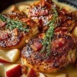 Imaginez un poulet tendre, baignant dans une sauce onctueuse et légèrement sucrée, rehaussée par des arômes de cidre de pomme. Chaque bouchée vous transporte dans un verger en fleurs, où la douceur des pommes rencontre la richesse du poulet.