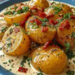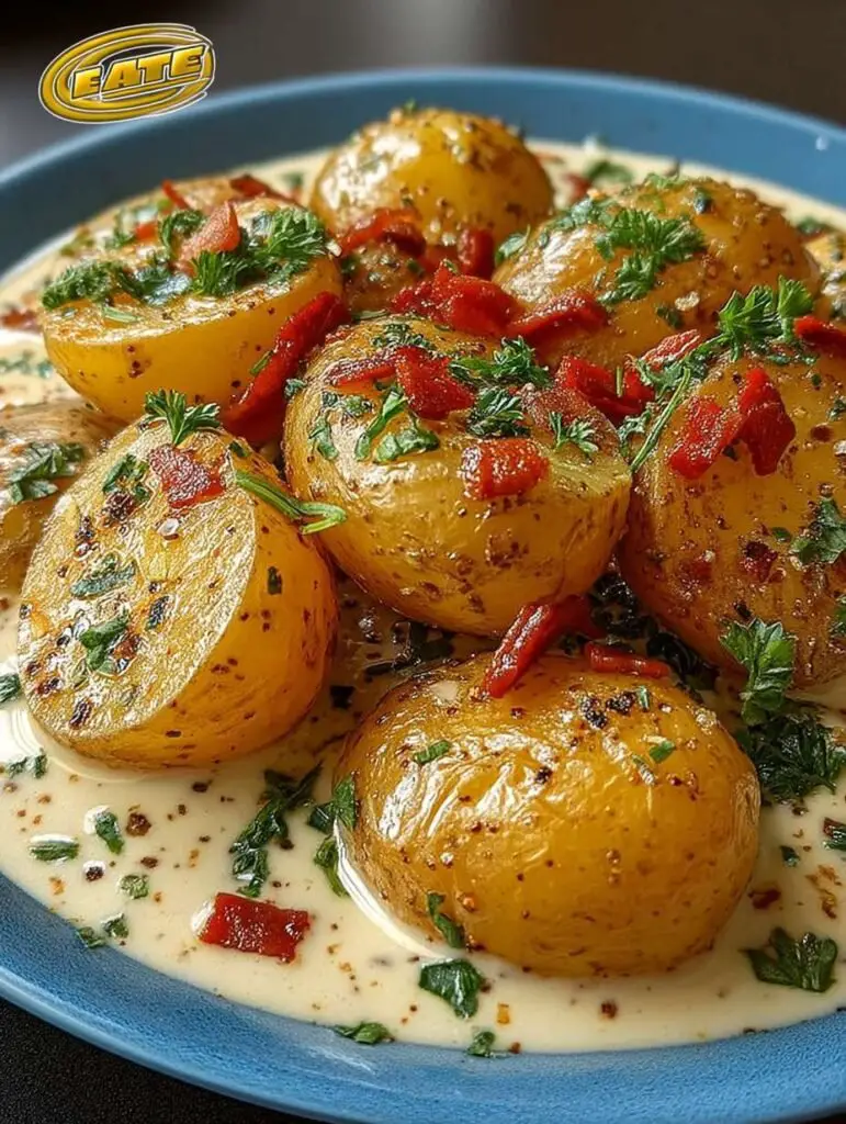 Comment préparer Recette de Pommes de Terre Grenaille à la Sauce Crémeuse à l’Ail et Lardons
