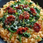 Le risotto aux tomates séchées et aux épinards est un plat savoureux qui allie la douceur des épinards à l’intensité des tomates séchées. Sa texture crémeuse et ses arômes envoûtants en font un véritable régal pour vos papilles. Ce plat est non seulement une excellente source de nutriments, mais il est également facile à préparer, parfait pour toutes les occasions. N’attendez plus ! Lancez-vous dans cette délicieuse recette et régalez-vous en famille ou entre amis. Partagez vos impressions et vos variations, car chaque cuisinier peut y apporter sa touche personnelle.