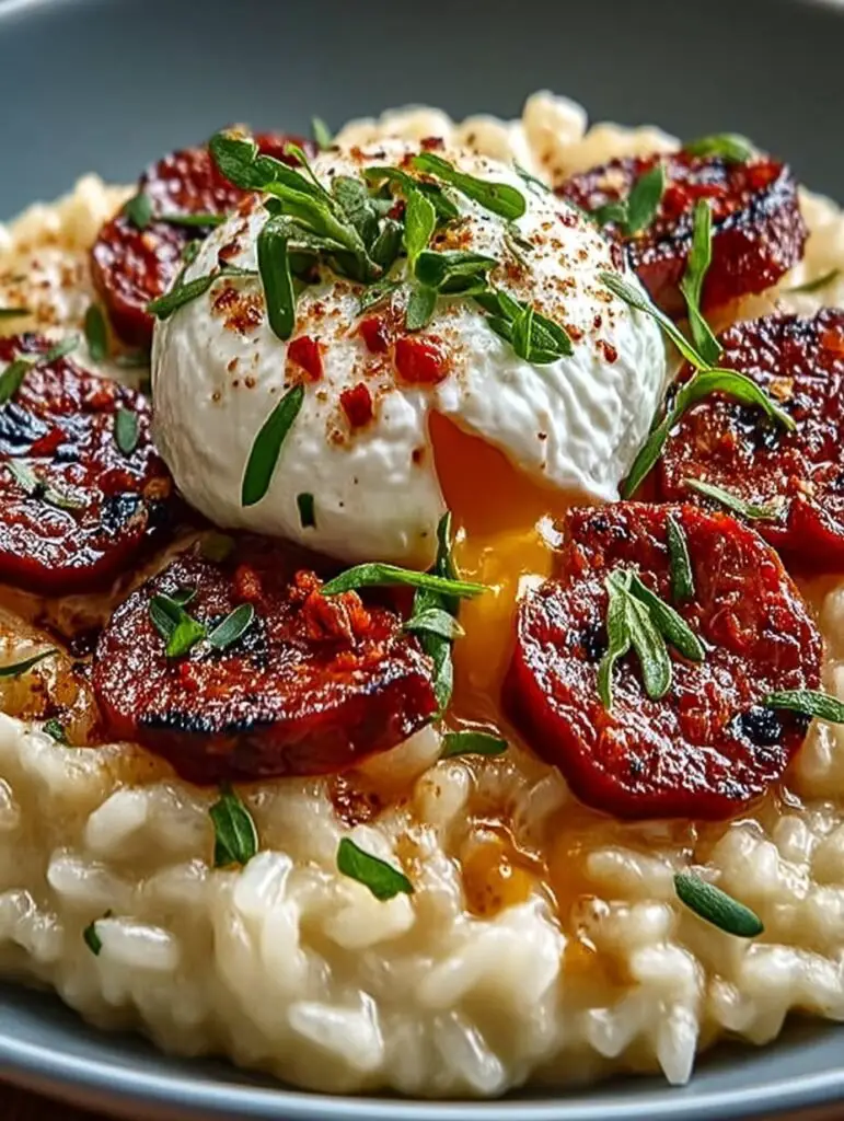 Risotto Crémeux au Chorizo Grillé et à la Burrata