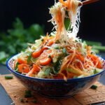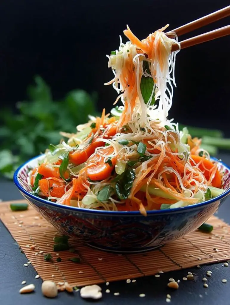 La salade asiatique aux vermicelles de riz, carottes et céleri-branche est un véritable festival de saveurs et de textures. Croquante, rafraîchissante et colorée, elle apporte une touche d’exotisme à vos repas. En plus d’être facile à préparer, cette recette est parfaite pour des repas légers ou en accompagnement lors de vos dîners. N’attendez plus pour ravir vos papilles avec cette salade pleine de fraîcheur ! Lancez-vous dès aujourd’hui dans la préparation de cette délicieuse salade asiatique et partagez votre expérience avec vos amis !