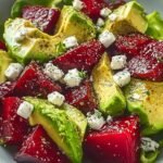 Délicieuse recette de salade betteraves, avocat et feta : fraîche, colorée et facile avec des instructions détaillées et des informations nutritionnelles.