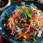 Cette salade chinoise est non seulement délicieuse mais aussi saine et pleine de couleurs vibrantes qui mettent l’eau à la bouche. Parfaite comme entrée ou accompagnement lors d’un repas entre amis ou en famille ! N’hésitez pas à ajuster les ingrédients selon vos goûts ou à y ajouter des protéines comme du poulet rôti coupé en dés pour un plat plus complet ! Bon appétit !