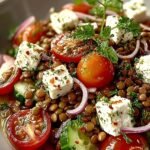 Cette recette me rappelle mes étés passés à la campagne, où les marchés regorgeaient de produits frais. Chaque fois que je voyais ces lentilles brillantes et cette feta blanche, je savais que c’était le moment parfait pour préparer ce plat vivifiant.