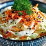 Délicieuse recette de salade de chou blanc à la japonaise avec des instructions détaillées et des informations nutritionnelles.