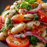 La salade de haricots blancs est une explosion de saveurs croquantes et de textures délicates qui ravira vos papilles à chaque bouchée. Imaginez des haricots crémeux, mélangés à des légumes frais et relevés d’une vinaigrette acidulée : un véritable régal pour les sens.