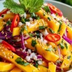 Délicieuse recette de salade de mangue thaï avec des instructions détaillées et des informations nutritionnelles.