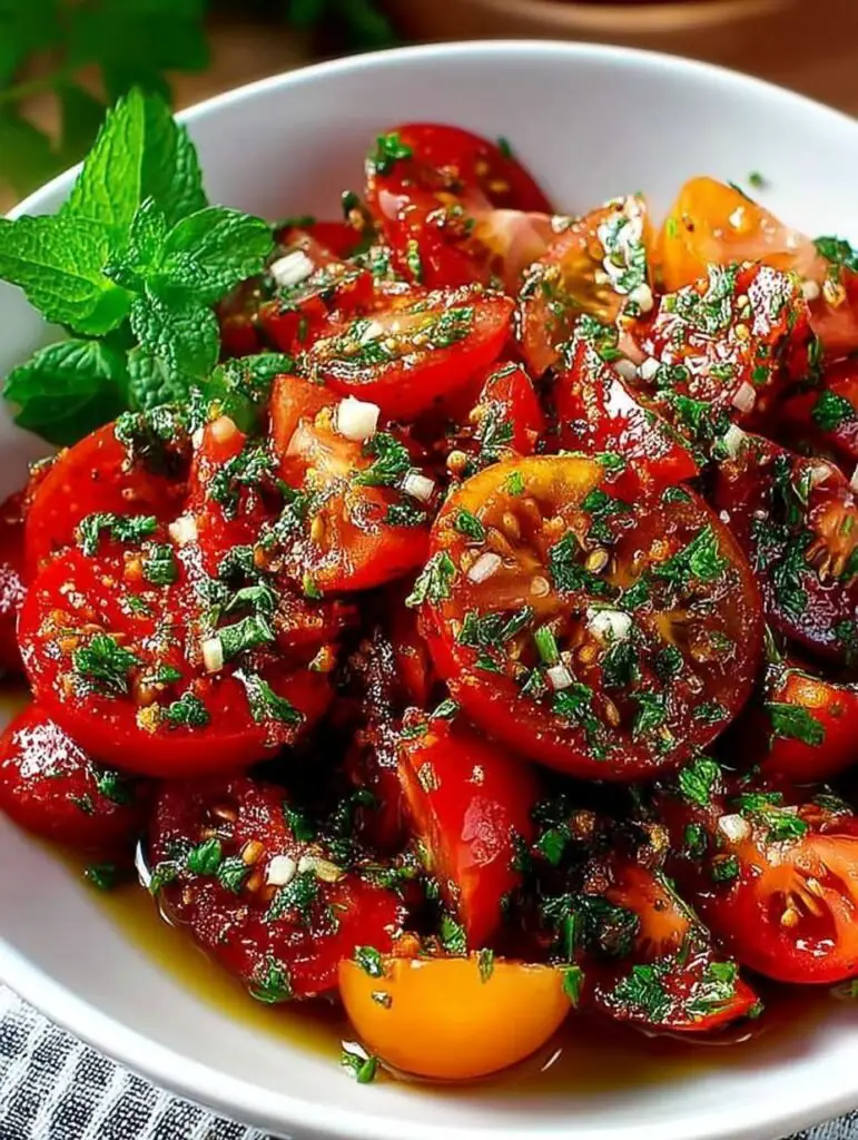 La Salade Libanaise de Tomates est parfaite comme accompagnement lors d’un barbecue ou comme entrée rafraîchissante lors d’un repas familial. N’hésitez pas à ajouter des olives noires ou du fromage feta émietté pour plus de gourmandise !
