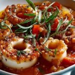 Cette recette me rappelle mes étés passés sur la côte, à déguster des plats de fruits de mer frais au bord de l’eau. Les calamars, baignés dans cette sauce délicieuse, sont devenus un incontournable de mes repas estivaux.