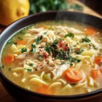 La Soupe au Poulet et Nouilles est une recette réconfortante qui combine des saveurs riches et des ingrédients simples. Elle offre un bol de chaleur, parfait pour les journées fraîches, tout en étant nutritive et satisfaisante. Chaque cuillerée vous transporte dans un monde de douceur et de bien-être, avec des morceaux de poulet tendre et des nouilles moelleuses. N’attendez plus pour savourer ce plat délicieux qui ravira toute la famille ! Lancez-vous dès aujourd’hui dans la préparation de cette soupe réconfortante et partagez vos créations avec nous.