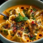 Cette Soupe aux Raviolis au Curry est plus qu’un simple repas ; c’est une invitation à voyager par les saveurs tout en restant confortablement installé chez soi. Avec sa préparation rapide, son aspect visuel irrésistible et ses possibilités infinies d’adaptations, elle deviendra sans aucun doute un classique dans votre cuisine. N’hésitez pas à vous amuser avec les ingrédients et à partager vos propres variations ! Bon appétit !