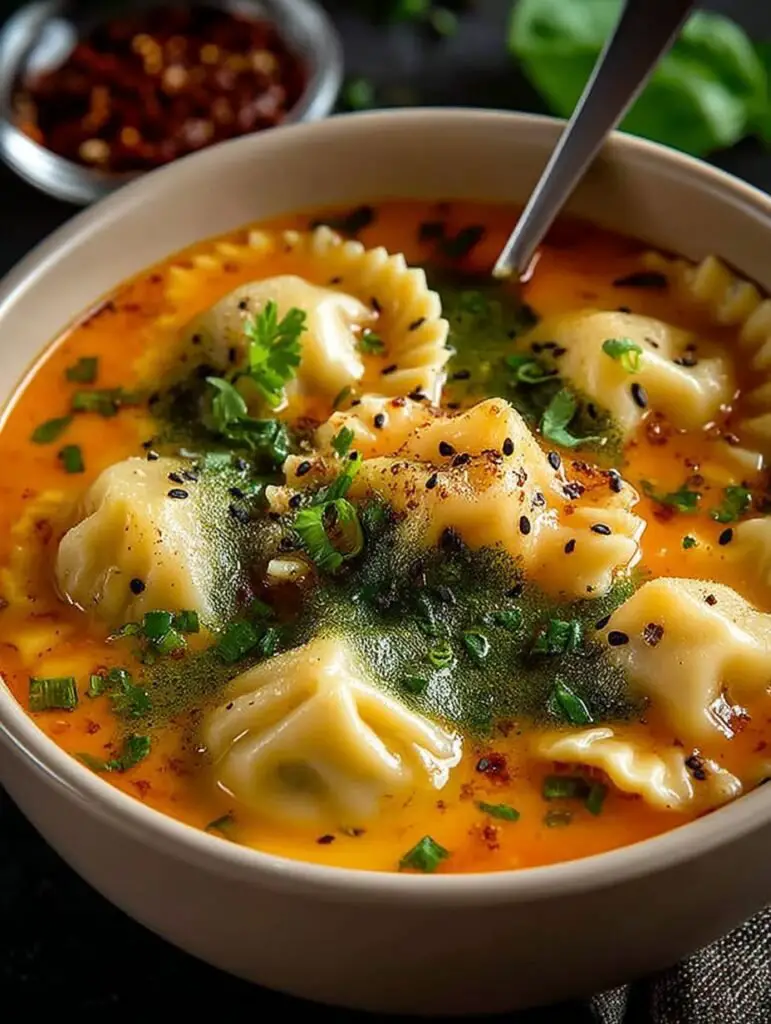 Avec cette recette facile, vous transformerez n’importe quelle soirée ordinaire en un moment exceptionnel. La Soupe aux Raviolis au Curry ne manquera pas d’éveiller vos papilles tout en apportant chaleur et réconfort à votre table ! Bon appétit !