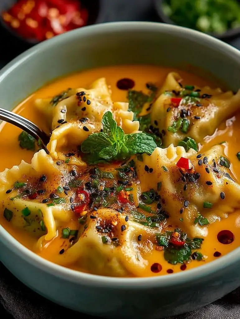 La Soupe aux Raviolis au Curry est un véritable festival de saveurs où le crémeux rencontre l’épicé, le tout enrobé dans une délicieuse harmonie de textures. Imaginez une cuillère qui plonge dans un bouillon réconfortant, où chaque bouchée révèle des raviolis tendres et savoureux, parfumés d’un subtil curry.