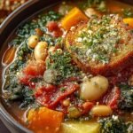 Délicieuse recette de soupe ribollita copieuse avec des instructions détaillées et des informations nutritionnelles.