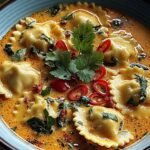 Cette Soupe Thaï au Curry et Raviolis à la Noix de Coco est une expérience culinaire inoubliable. Tout d’abord, elle est incroyablement facile à préparer, même pour les novices en cuisine. Ensuite, son profil de saveur unique mélange le piquant du curry et la douceur de la noix de coco, créant une symphonie gustative. De plus, son aspect visuel époustouflant émerveillera vos convives : un véritable tableau coloré dans votre assiette. Enfin, cette recette est polyvalente ; n’hésitez pas à personnaliser les ingrédients selon vos envies.
