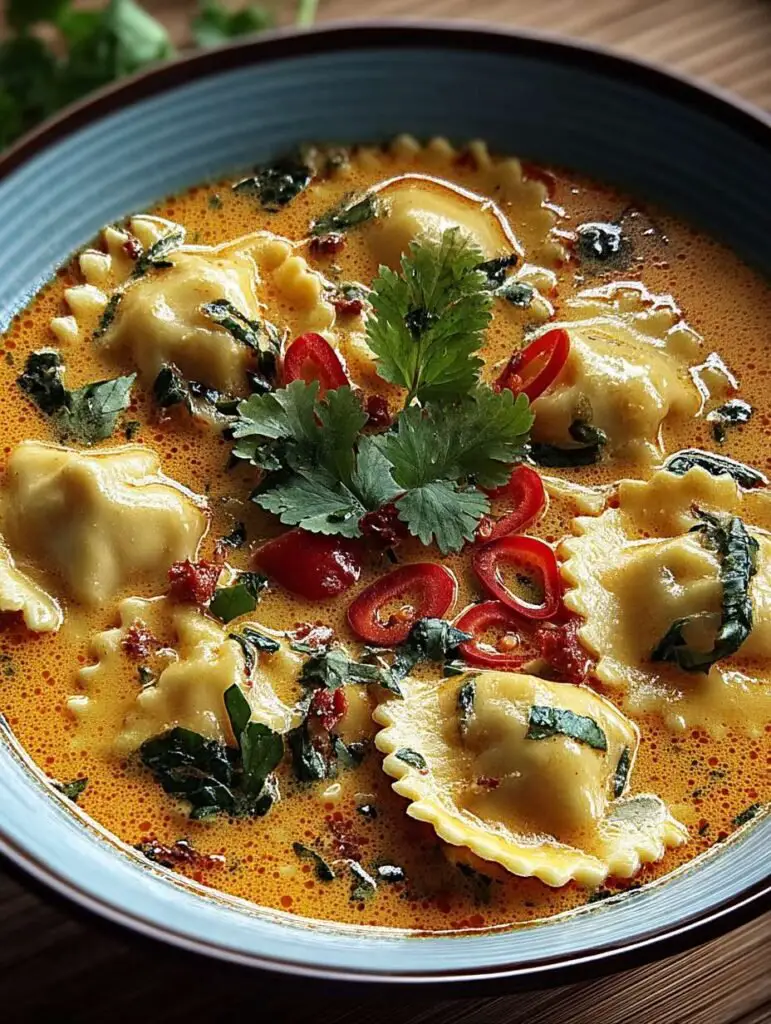 Soupe Thaï au Curry et Raviolis à la Noix de Coco
