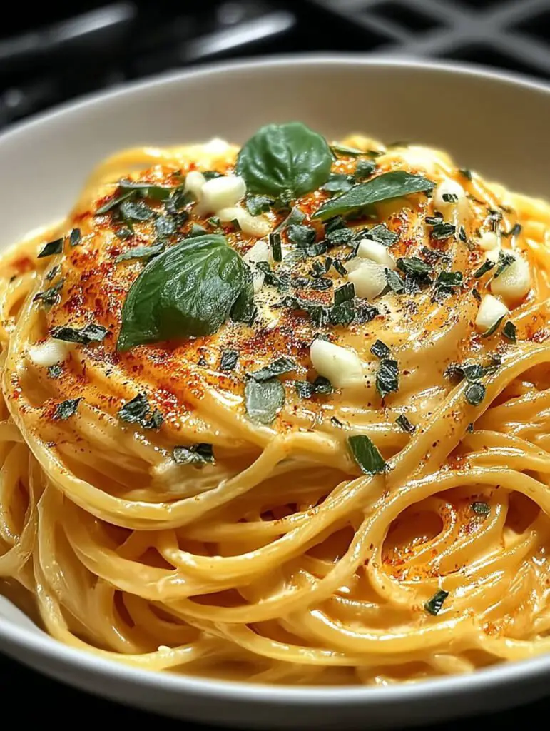 Délicieuse recette de spaghetti crémeux parmesan ail avec des instructions détaillées et des informations nutritionnelles.