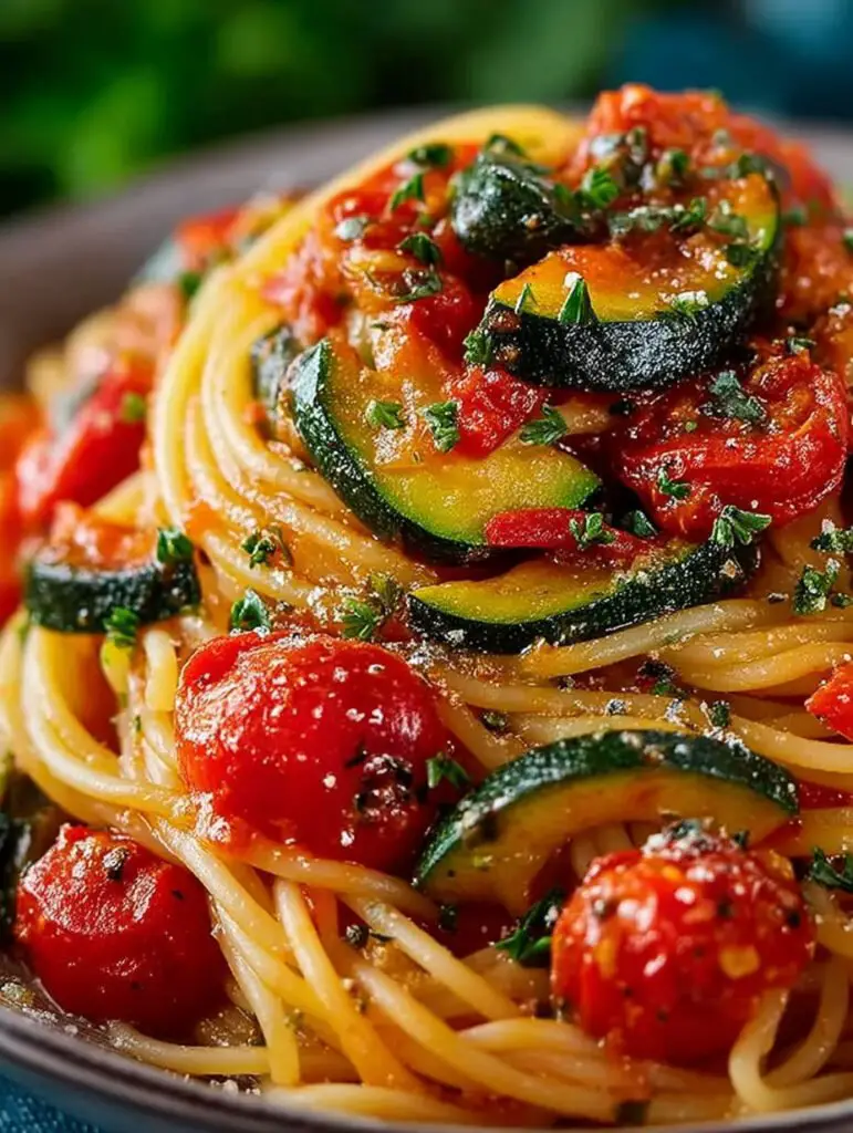 Délicieuse recette de spaghettis aux tomates et courgettes : un délice rapide! – cuisiner avec eva avec des instructions détaillées et des informations nutritionnelles.